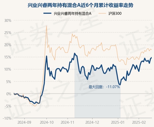 证券之星消息,2月20日,兴业兴睿两年持有混合A最新单位净值为0.833元,累计净值为0.833元,较前一交易日上涨0.39%。历史数据显示该基金近1个月上涨3.85%,近3个月上涨3.22%,近6个月上涨14.69%,近1年上涨13.74%。该基金近6个月的累计收益率走势如下图: