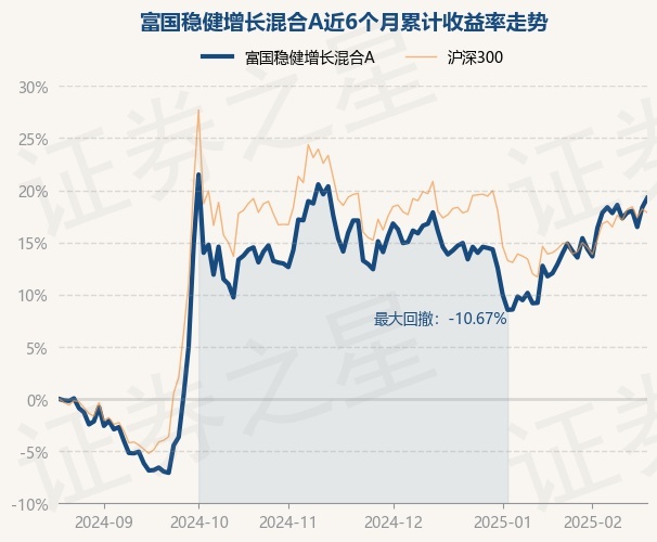 证券之星消息,2月20日,富国稳健增长混合A最新单位净值为0.6888元,累计净值为0.6888元,较前一交易日上涨0.76%。历史数据显示该基金近1个月上涨4.65%,近3个月上涨1.83%,近6个月上涨19.25%,近1年上涨12.49%。该基金近6个月的累计收益率走势如下图: