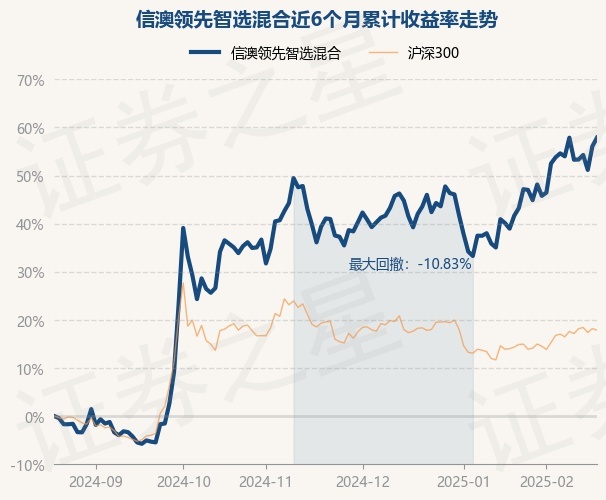 证券之星消息,2月20日,信澳领先智选混合最新单位净值为0.7418元,累计净值为0.7418元,较前一交易日上涨1.15%。历史数据显示该基金近1个月上涨10.21%,近3个月上涨11.9%,近6个月上涨57.86%,近1年上涨51.67%。该基金近6个月的累计收益率走势如下图: