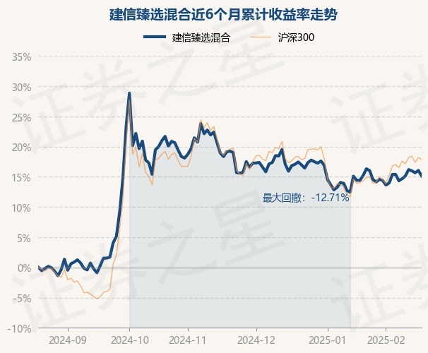 证券之星消息,2月20日,建信臻选混合最新单位净值为0.8264元,累计净值为0.8264元,较前一交易日下跌0.79%。历史数据显示该基金近1个月下跌1.03%,近3个月下跌3.45%,近6个月上涨15.13%,近1年上涨13.52%。该基金近6个月的累计收益率走势如下图: