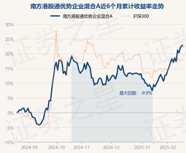 证券之星消息,2月20日,南方港股通优势企业混合A最新单位净值为0.883元,累计净值为0.883元,较前一交易日上涨0.0%。历史数据显示该基金近1个月上涨8.36%,近3个月上涨8.61%,近6个月上涨21.39%,近1年上涨27.23%。该基金近6个月的累计收益率走势如下图: