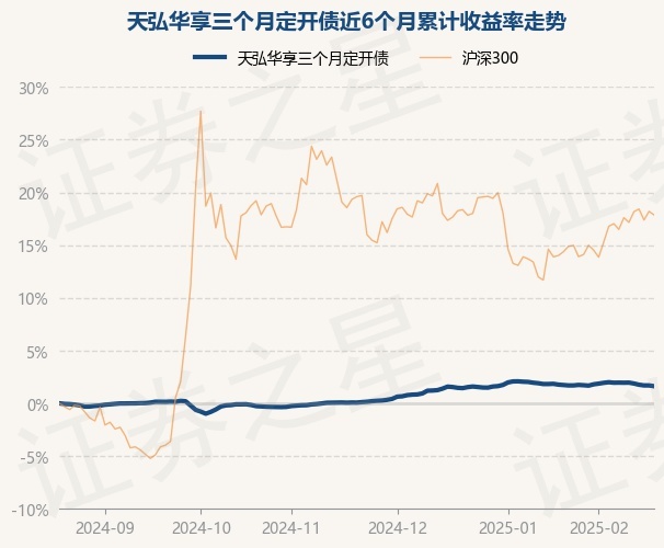 证券之星消息,2月20日,天弘华享三个月定开债最新单位净值为1.0709元,累计净值为1.218元,较前一交易日下跌0.07%。历史数据显示该基金近1个月下跌0.07%,近3个月上涨1.55%,近6个月上涨1.62%,近1年上涨3.89%。该基金近6个月的累计收益率走势如下图: