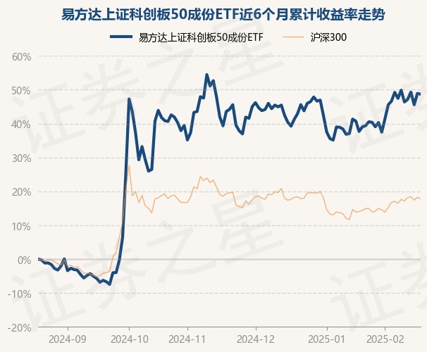 证券之星消息,2月20日,易方达上证科创板50成份ETF最新单位净值为1.0582元,累计净值为0.7414元,较前一交易日下跌0.14%。历史数据显示该基金近1个月上涨6.68%,近3个月上涨3.11%,近6个月上涨48.69%,近1年上涨36.91%。该基金近6个月的累计收益率走势如下图: