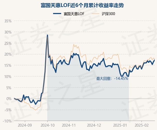 证券之星消息,2月20日,富国天惠LOF最新单位净值为2.4943元,累计净值为5.5423元,较前一交易日上涨0.65%。历史数据显示该基金近1个月上涨2.67%,近3个月上涨0.72%,近6个月上涨17.29%,近1年上涨9.35%。该基金近6个月的累计收益率走势如下图: