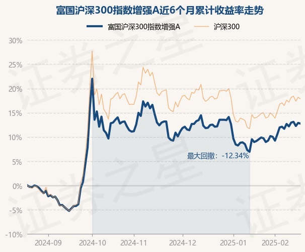 证券之星消息,2月20日,富国沪深300指数增强A最新单位净值为1.573元,累计净值为2.159元,较前一交易日下跌0.13%。历史数据显示该基金近1个月上涨2.61%,近3个月下跌0.38%,近6个月上涨12.76%,近1年上涨13.57%。该基金近6个月的累计收益率走势如下图: