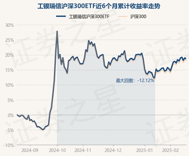 证券之星消息,2月20日,工银瑞信沪深300ETF最新单位净值为3.98元,累计净值为1.1318元,较前一交易日下跌0.29%。历史数据显示该基金近1个月上涨2.68%,近3个月下跌1.08%,近6个月上涨18.42%,近1年上涨18.53%。该基金近6个月的累计收益率走势如下图: