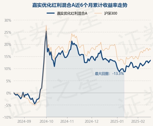 证券之星消息,2月20日,嘉实优化红利混合A最新单位净值为1.38元,累计净值为3.266元,较前一交易日上涨0.36%。历史数据显示该基金近1个月上涨0.73%,近3个月下跌2.06%,近6个月上涨13.39%,近1年上涨5.99%。该基金近6个月的累计收益率走势如下图: