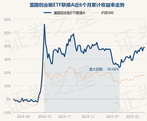 证券之星消息,2月20日,富国创业板ETF联接A最新单位净值为0.81元,累计净值为1.7238元,较前一交易日下跌0.07%。历史数据显示该基金近1个月上涨5.47%,近3个月下跌1.27%,近6个月上涨38.65%,近1年上涨26.76%。该基金近6个月的累计收益率走势如下图: