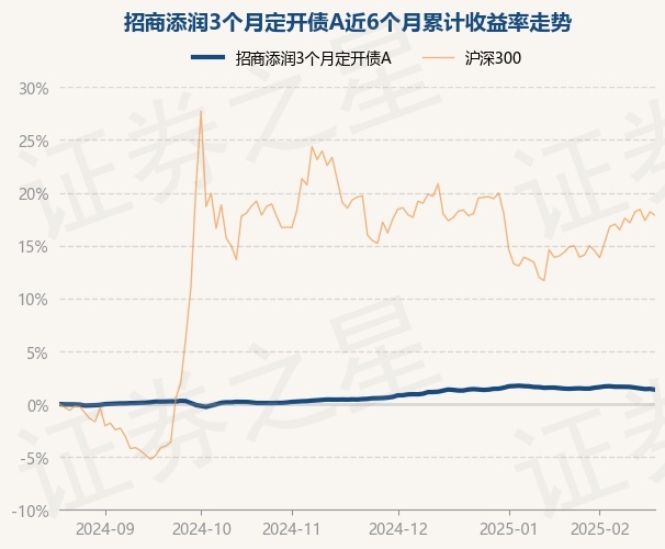 证券之星消息,2月20日,招商添润3个月定开债A最新单位净值为1.0531元,累计净值为1.2651元,较前一交易日下跌0.08%。历史数据显示该基金近1个月下跌0.08%,近3个月上涨0.93%,近6个月上涨1.36%,近1年上涨3.35%。该基金近6个月的累计收益率走势如下图: