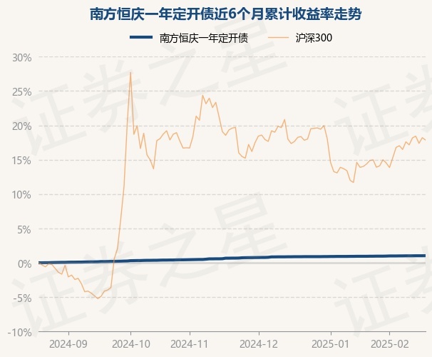 证券之星消息,2月20日,南方恒庆一年定开债最新单位净值为1.0274元,累计净值为1.1101元,较前一交易日上涨0.01%。历史数据显示该基金近1个月上涨0.08%,近3个月上涨0.35%,近6个月上涨1.03%,近1年上涨2.17%。该基金近6个月的累计收益率走势如下图: