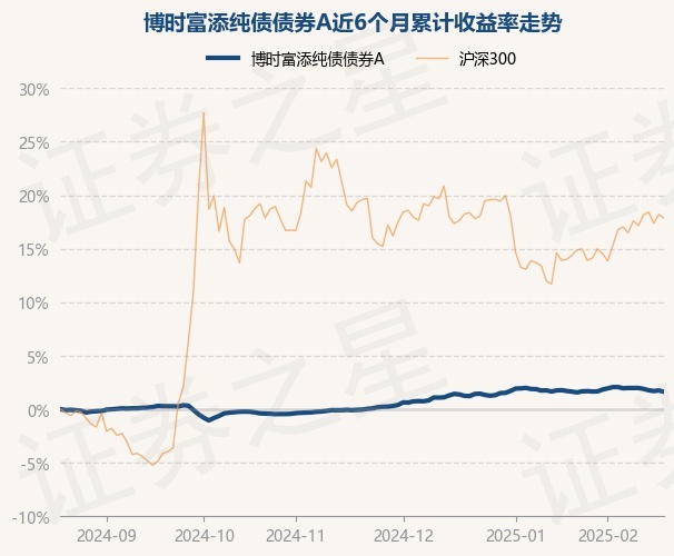 证券之星消息,2月20日,博时富添纯债债券A最新单位净值为1.1104元,累计净值为1.1761元,较前一交易日下跌0.13%。历史数据显示该基金近1个月上涨0.05%,近3个月上涨1.67%,近6个月上涨1.63%,近1年上涨3.96%。该基金近6个月的累计收益率走势如下图: