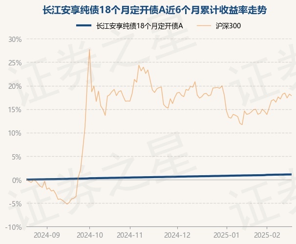 证券之星消息,2月20日,长江安享纯债18个月定开债A最新单位净值为1.009元,累计净值为1.099元,较前一交易日上涨0.01%。历史数据显示该基金近1个月上涨0.18%,近3个月上涨0.55%,近6个月上涨1.1%,近1年上涨2.2%。该基金近6个月的累计收益率走势如下图: