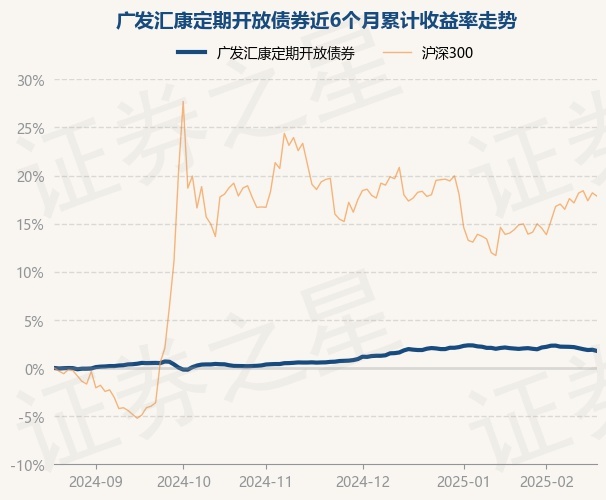 证券之星消息,2月20日,广发汇康定期开放债券最新单位净值为1.0417元,累计净值为1.2595元,较前一交易日下跌0.12%。历史数据显示该基金近1个月下跌0.21%,近3个月上涨1.18%,近6个月上涨1.77%,近1年上涨4.55%。该基金近6个月的累计收益率走势如下图: