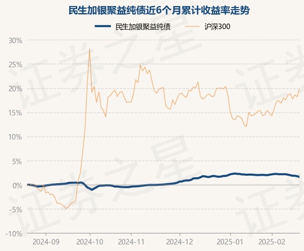 证券之星消息,2月21日,民生加银聚益纯债最新单位净值为1.0768元,累计净值为1.1919元,较前一交易日下跌0.13%。历史数据显示该基金近1个月下跌0.39%,近3个月上涨1.59%,近6个月上涨1.63%,近1年上涨4.78%。该基金近6个月的累计收益率走势如下图:
