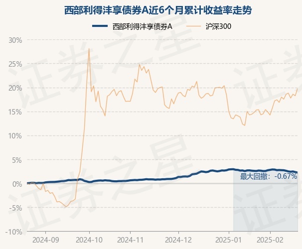 证券之星消息,2月21日,西部利得沣享债券A最新单位净值为1.0617元,累计净值为1.0917元,较前一交易日下跌0.09%。历史数据显示该基金近1个月下跌0.4%,近3个月上涨1.39%,近6个月上涨2.24%,近1年上涨4.51%。该基金近6个月的累计收益率走势如下图:
