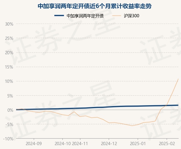 证券之星消息,2月21日,中加享润两年定开债最新单位净值为1.0083元,累计净值为1.1458元,较前一交易日上涨0.05%。历史数据显示该基金近1个月上涨0.22%,近3个月上涨0.85%,近6个月上涨1.54%,近1年上涨2.78%。该基金近6个月的累计收益率走势如下图: