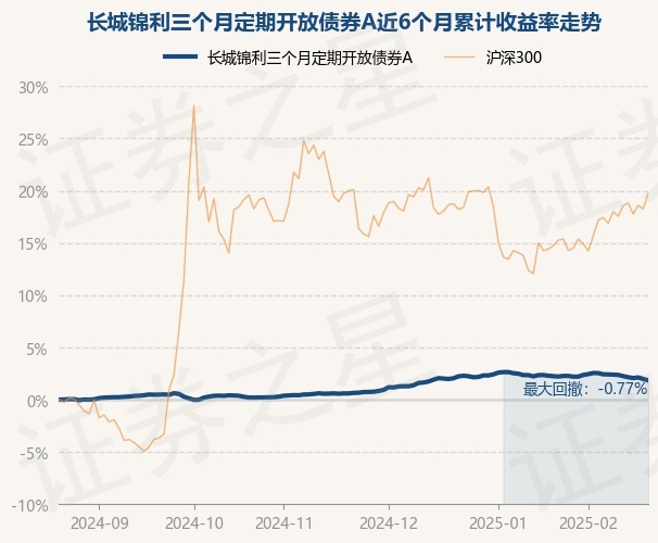 证券之星消息,2月21日,长城锦利三个月定期开放债券A最新单位净值为1.0536元,累计净值为1.0536元,较前一交易日下跌0.13%。历史数据显示该基金近1个月下跌0.42%,近3个月上涨1.19%,近6个月上涨1.85%,近1年上涨4.02%。该基金近6个月的累计收益率走势如下图: