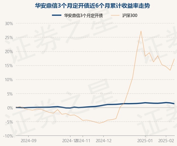 证券之星消息,2月21日,华安鼎信3个月定开债最新单位净值为1.0519元,累计净值为1.2239元,较前一交易日下跌0.27%。历史数据显示该基金近1个月下跌0.16%,近3个月上涨1.07%,近6个月上涨1.26%,近1年上涨3.39%。该基金近6个月的累计收益率走势如下图: