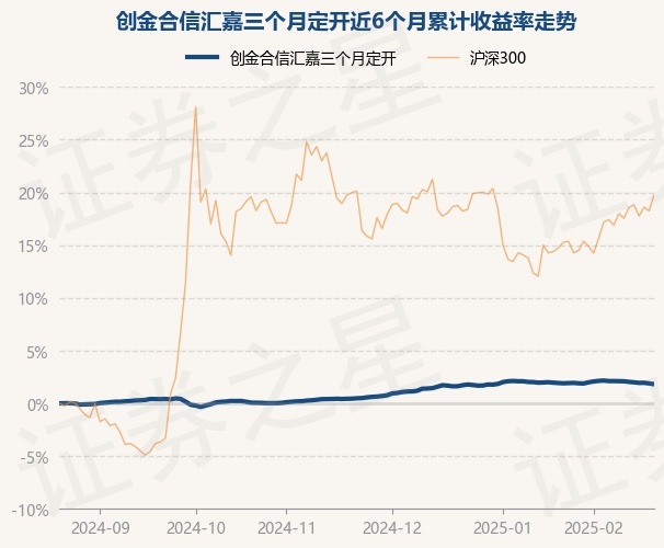 证券之星消息,2月21日,创金合信汇嘉三个月定开最新单位净值为1.0622元,累计净值为1.1951元,较前一交易日下跌0.08%。历史数据显示该基金近1个月下跌0.1%,近3个月上涨1.33%,近6个月上涨1.82%,近1年上涨4.38%。该基金近6个月的累计收益率走势如下图: