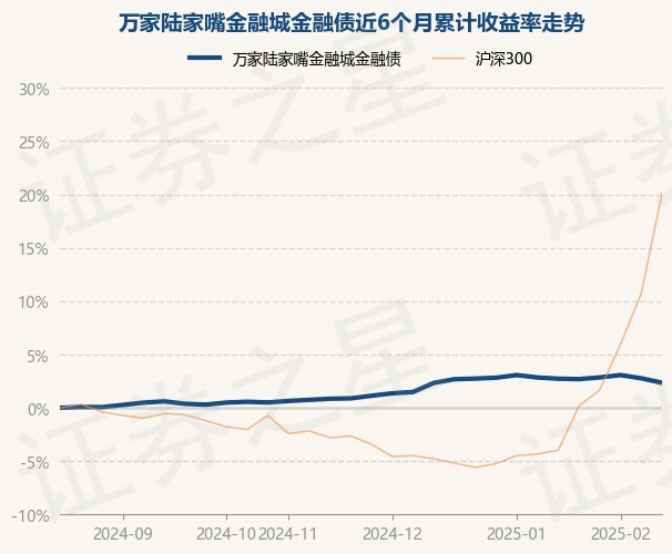 证券之星消息,2月21日,万家陆家嘴金融城金融债最新单位净值为1.0832元,累计净值为1.1544元,较前一交易日下跌0.4%。历史数据显示该基金近1个月下跌0.37%,近3个月上涨1.49%,近6个月上涨2.35%,近1年上涨4.76%。该基金近6个月的累计收益率走势如下图: