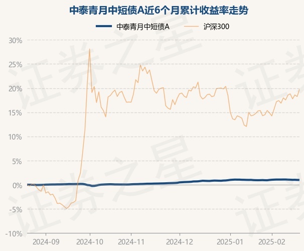 证券之星消息,2月21日,中泰青月中短债A最新单位净值为1.1825元,累计净值为1.1825元,较前一交易日上涨0.0%。历史数据显示该基金近1个月上涨0.02%,近3个月上涨0.68%,近6个月上涨0.96%,近1年上涨2.39%。该基金近6个月的累计收益率走势如下图: