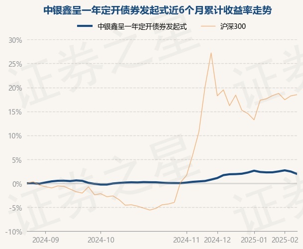 中银鑫呈一年定开债券发起式为债券型-长债基金,根据最新一期基金季报显示,该基金资产配置:无股票类资产,债券占净值比103.35%,现金占净值比0.03%。