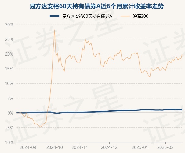 证券之星消息,2月21日,易方达安裕60天持有债券A最新单位净值为1.0562元,累计净值为1.0562元,较前一交易日下跌0.02%。历史数据显示该基金近1个月上涨0.1%,近3个月上涨0.7%,近6个月上涨1.0%,近1年上涨2.51%。该基金近6个月的累计收益率走势如下图: