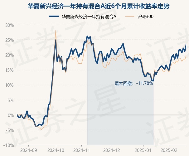 证券之星消息,2月21日,华夏新兴经济一年持有混合A最新单位净值为0.968元,累计净值为0.968元,较前一交易日上涨1.7%。历史数据显示该基金近1个月上涨5.98%,近3个月上涨1.85%,近6个月上涨23.23%,近1年上涨30.13%。该基金近6个月的累计收益率走势如下图: