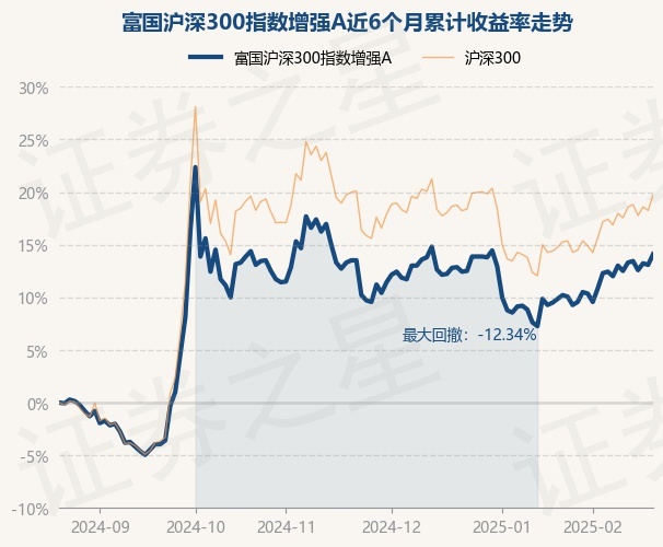 证券之星消息,2月21日,富国沪深300指数增强A最新单位净值为1.587元,累计净值为2.173元,较前一交易日上涨0.89%。历史数据显示该基金近1个月上涨3.66%,近3个月上涨0.51%,近6个月上涨14.09%,近1年上涨13.52%。该基金近6个月的累计收益率走势如下图:
