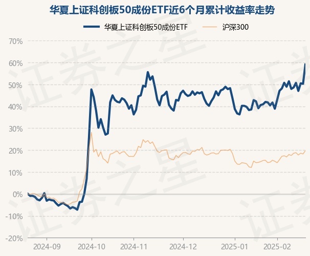 证券之星消息,2月21日,华夏上证科创板50成份ETF最新单位净值为1.1548元,累计净值为0.802元,较前一交易日上涨5.88%。历史数据显示该基金近1个月上涨12.04%,近3个月上涨8.46%,近6个月上涨59.09%,近1年上涨45.83%。该基金近6个月的累计收益率走势如下图: