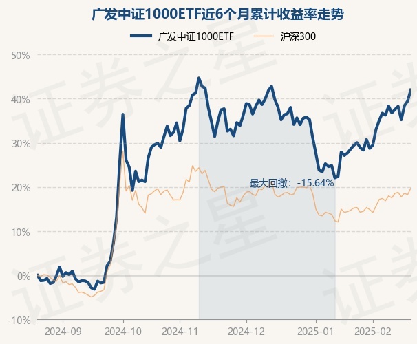 证券之星消息,2月21日,广发中证1000ETF最新单位净值为2.6238元,累计净值为0.9261元,较前一交易日上涨1.82%。历史数据显示该基金近1个月上涨9.17%,近3个月上涨3.09%,近6个月上涨41.98%,近1年上涨29.12%。该基金近6个月的累计收益率走势如下图: