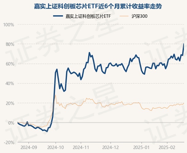 证券之星消息,2月21日,嘉实上证科创板芯片ETF最新单位净值为1.6565元,累计净值为1.6565元,较前一交易日上涨6.86%。历史数据显示该基金近1个月上涨12.03%,近3个月上涨12.98%,近6个月上涨79.84%,近1年上涨79.1%。该基金近6个月的累计收益率走势如下图: