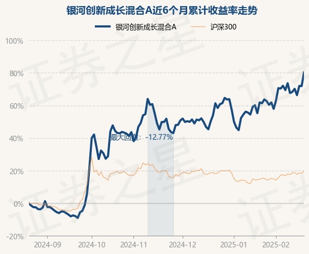 证券之星消息,2月21日,银河创新成长混合A最新单位净值为7.169元,累计净值为7.169元,较前一交易日上涨4.83%。历史数据显示该基金近1个月上涨10.06%,近3个月上涨18.65%,近6个月上涨80.2%,近1年上涨86.58%。该基金近6个月的累计收益率走势如下图: