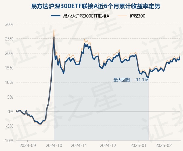 证券之星消息,2月21日,易方达沪深300ETF联接A最新单位净值为1.5719元,累计净值为1.5719元,较前一交易日上涨1.2%。历史数据显示该基金近1个月上涨3.72%,近3个月上涨0.06%,近6个月上涨19.0%,近1年上涨17.13%。该基金近6个月的累计收益率走势如下图: