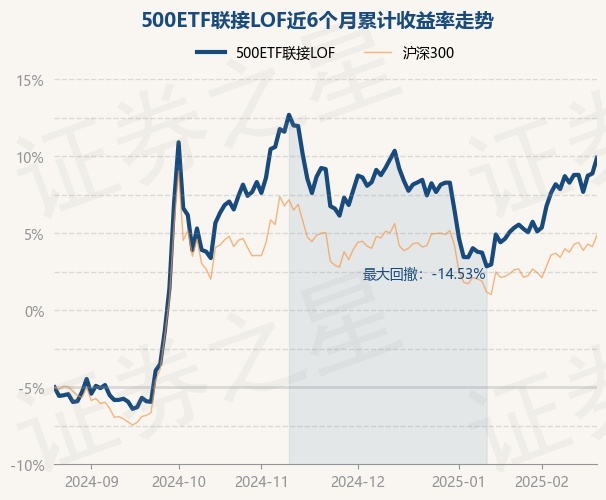 证券之星消息,2月21日,500ETF联接LOF最新单位净值为1.6907元,累计净值为1.7907元,较前一交易日上涨1.6%。历史数据显示该基金近1个月上涨7.17%,近3个月上涨1.15%,近6个月上涨29.8%,近1年上涨18.33%。该基金近6个月的累计收益率走势如下图:
