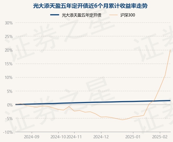 证券之星消息,2月21日,光大添天盈五年定开债最新单位净值为1.0876元,累计净值为1.1486元,较前一交易日上涨0.05%。历史数据显示该基金近1个月上涨0.23%,近3个月上涨0.71%,近6个月上涨1.45%,近1年上涨3.01%。该基金近6个月的累计收益率走势如下图:
