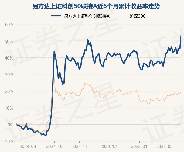 证券之星消息,2月21日,易方达上证科创50联接A最新单位净值为0.8506元,累计净值为0.8506元,较前一交易日上涨5.66%。历史数据显示该基金近1个月上涨11.47%,近3个月上涨7.85%,近6个月上涨53.51%,近1年上涨41.6%。该基金近6个月的累计收益率走势如下图: