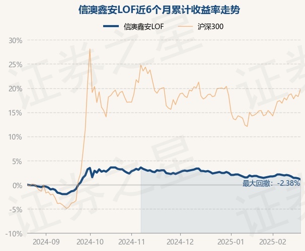 证券之星消息,2月21日,信澳鑫安LOF最新单位净值为0.995元,累计净值为1.373元,较前一交易日下跌0.2%。历史数据显示该基金近1个月下跌0.4%,近3个月下跌1.84%,近6个月上涨1.11%,近1年上涨0.04%。该基金近6个月的累计收益率走势如下图: