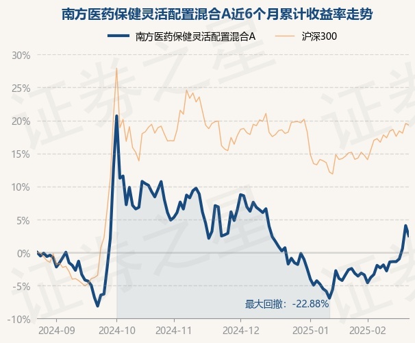 证券之星消息,2月24日,南方医药保健灵活配置混合A最新单位净值为1.9968元,累计净值为2.2118元,较前一交易日下跌1.49%。历史数据显示该基金近1个月上涨5.82%,近3个月上涨0.04%,近6个月上涨2.53%,近1年下跌0.76%。该基金近6个月的累计收益率走势如下图: