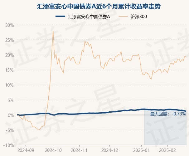证券之星消息,2月24日,汇添富安心中国债券A最新单位净值为1.2443元,累计净值为1.4523元,较前一交易日下跌0.14%。历史数据显示该基金近1个月下跌0.42%,近3个月上涨0.53%,近6个月上涨1.15%,近1年上涨3.82%。该基金近6个月的累计收益率走势如下图: