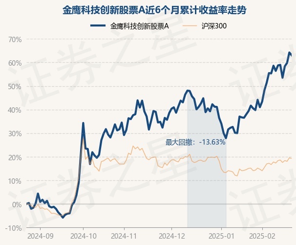 证券之星消息,2月24日,金鹰科技创新股票A最新单位净值为1.6913元,累计净值为2.0273元,较前一交易日下跌0.72%。历史数据显示该基金近1个月上涨13.1%,近3个月上涨21.2%,近6个月上涨63.05%,近1年上涨57.9%。该基金近6个月的累计收益率走势如下图: