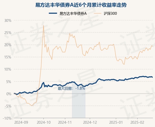 证券之星消息,2月24日,易方达丰华债券A最新单位净值为1.3246元,累计净值为1.5391元,较前一交易日下跌0.23%。历史数据显示该基金近1个月上涨0.13%,近3个月上涨3.44%,近6个月上涨6.62%,近1年上涨6.44%。该基金近6个月的累计收益率走势如下图: