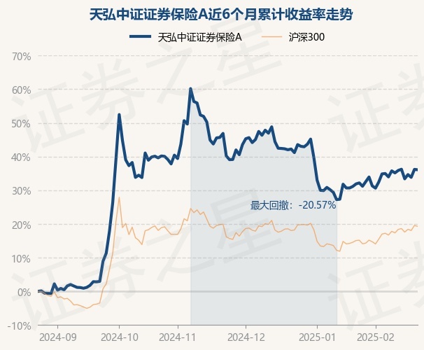 证券之星消息,2月24日,天弘中证证券保险A最新单位净值为1.0496元,累计净值为1.0496元,较前一交易日下跌0.09%。历史数据显示该基金近1个月上涨1.61%,近3个月下跌2.93%,近6个月上涨36.08%,近1年上涨26.26%。该基金近6个月的累计收益率走势如下图: