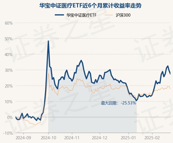 证券之星消息,2月24日,华宝中证医疗ETF最新单位净值为0.3551元,累计净值为1.0653元,较前一交易日下跌2.28%。历史数据显示该基金近1个月上涨13.81%,近3个月上涨6.06%,近6个月上涨29.46%,近1年上涨1.02%。该基金近6个月的累计收益率走势如下图: