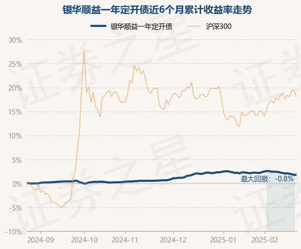 证券之星消息,2月24日,银华顺益一年定开债最新单位净值为1.0267元,累计净值为1.1067元,较前一交易日下跌0.14%。历史数据显示该基金近1个月下跌0.41%,近3个月上涨1.17%,近6个月上涨1.74%,近1年上涨3.89%。该基金近6个月的累计收益率走势如下图: