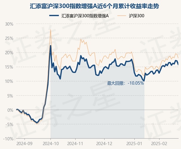 证券之星消息,2月24日,汇添富沪深300指数增强A最新单位净值为1.3688元,累计净值为1.5787元,较前一交易日下跌0.12%。历史数据显示该基金近1个月上涨2.87%,近3个月上涨4.22%,近6个月上涨16.99%,近1年上涨18.09%。该基金近6个月的累计收益率走势如下图: