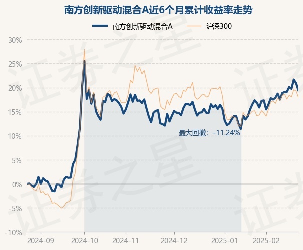 证券之星消息,2月25日,南方创新驱动混合A最新单位净值为0.6767元,累计净值为0.6767元,较前一交易日下跌1.2%。历史数据显示该基金近1个月上涨1.9%,近3个月上涨6.28%,近6个月上涨19.45%,近1年上涨19.22%。该基金近6个月的累计收益率走势如下图: