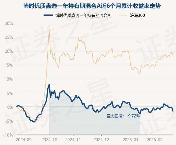 证券之星消息,2月25日,博时优质鑫选一年持有期混合A最新单位净值为0.7543元,累计净值为0.7543元,较前一交易日下跌1.41%。历史数据显示该基金近1个月下跌0.51%,近3个月下跌0.26%,近6个月下跌1.89%,近1年上涨0.84%。该基金近6个月的累计收益率走势如下图: