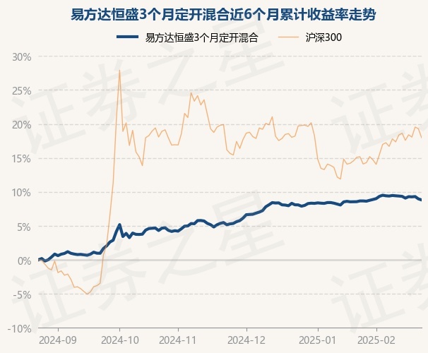证券之星消息,2月25日,易方达恒盛3个月定开混合最新单位净值为1.1801元,累计净值为1.3681元,较前一交易日下跌0.14%。历史数据显示该基金近1个月上涨0.05%,近3个月上涨3.35%,近6个月上涨8.82%,近1年上涨9.08%。该基金近6个月的累计收益率走势如下图: