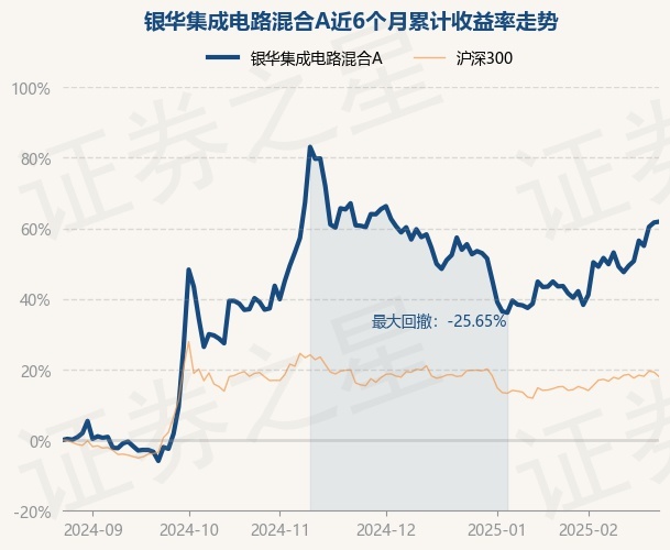 证券之星消息,2月25日,银华集成电路混合A最新单位净值为1.1165元,累计净值为1.1165元,较前一交易日上涨0.15%。历史数据显示该基金近1个月上涨13.87%,近3个月上涨0.73%,近6个月上涨61.91%,近1年上涨48.95%。该基金近6个月的累计收益率走势如下图: